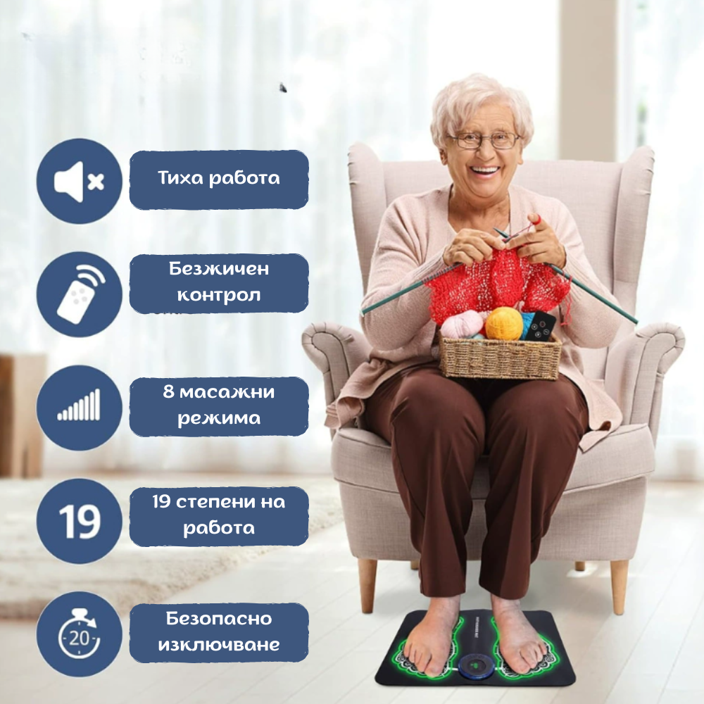 Swizoral Масажор за крака използва усъвършенствана EMS-технология, за да подобри кръвообращението, стимулира нервите и облекчи болката – без лекарства или скъпи терапии.